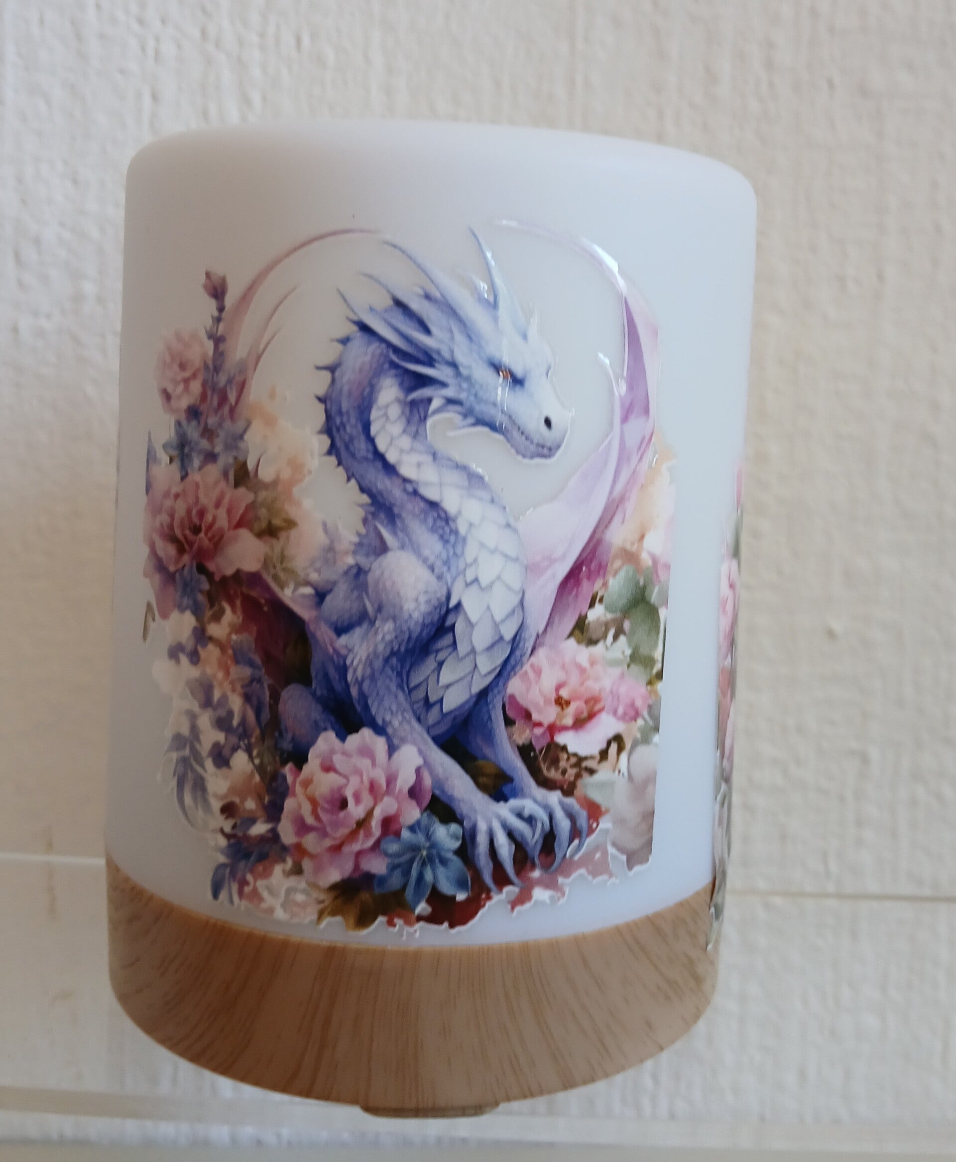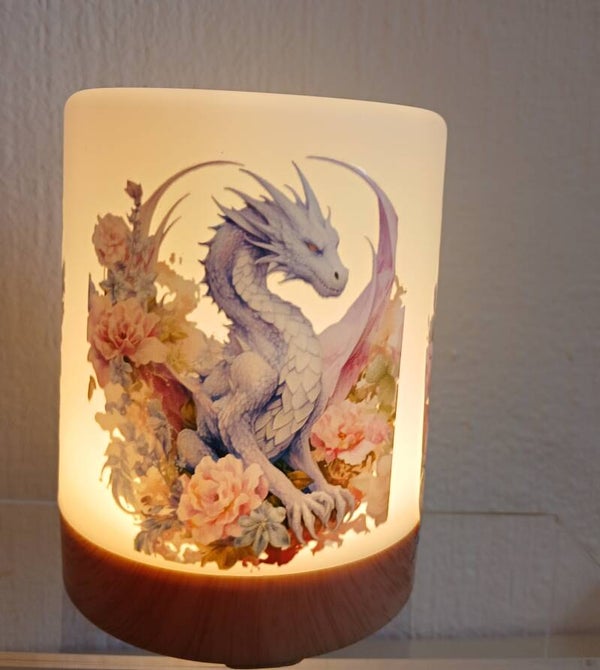 Touch Lampe mit lila Drachen.