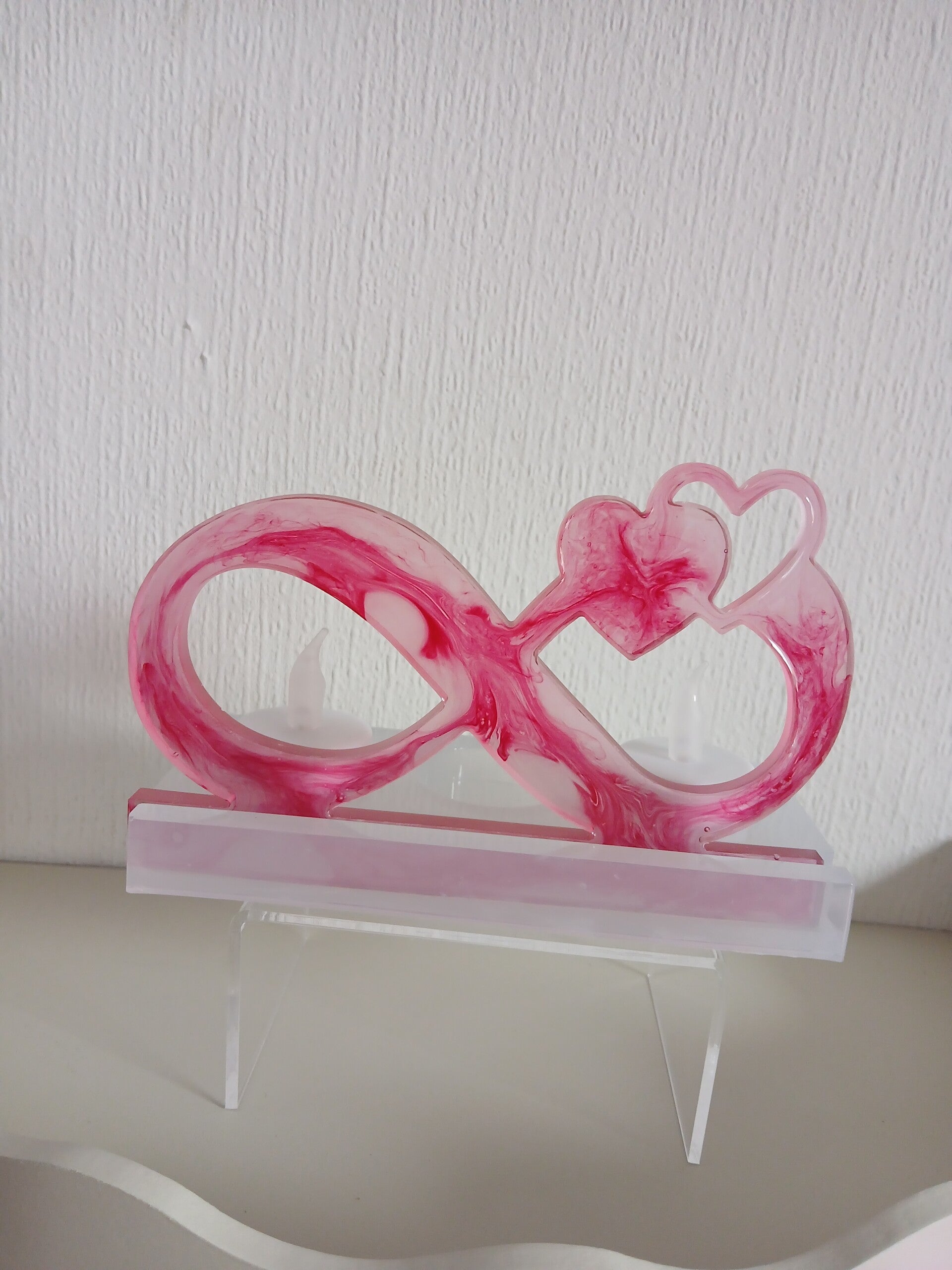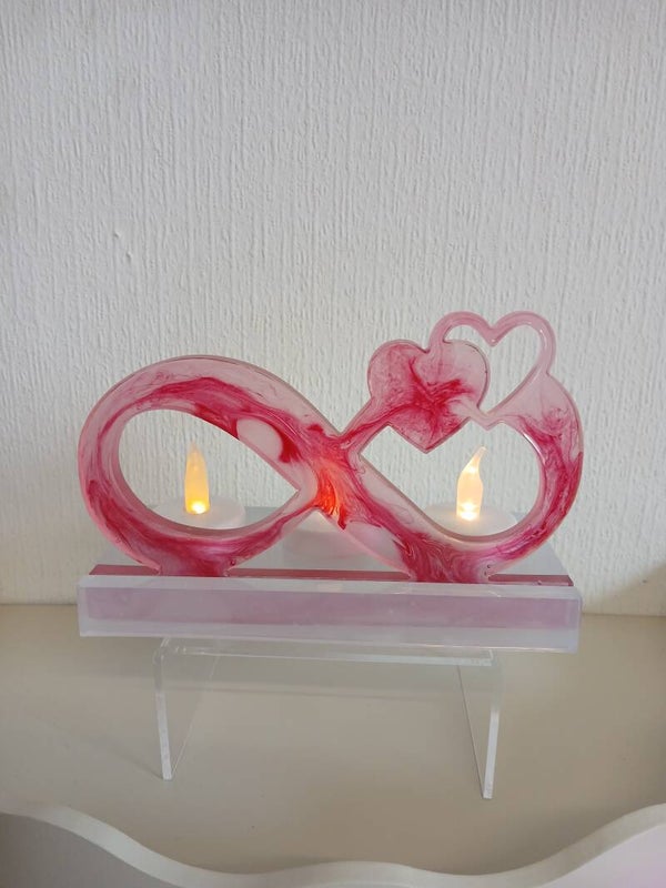 Teelicht mit Herzform aus Epoxidharz gegossen.