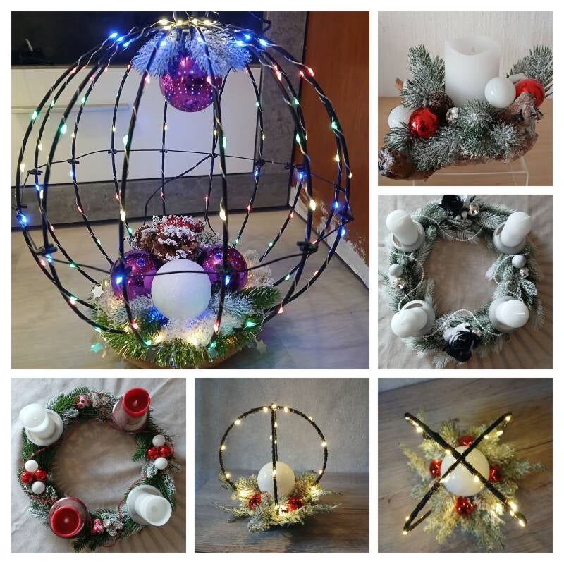 Teelichter kann ich in unterschiedliche Farben herstellen. Genauso wie Gestecke und LED Kugeln.